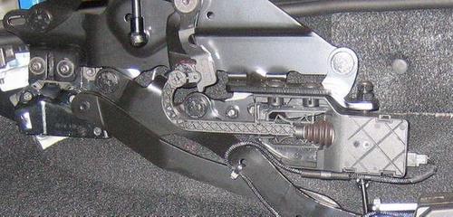 Die vorderen Flaps der Hutablage werden von Elektromotoren über ein Schneckengetriebe ausgefahren.