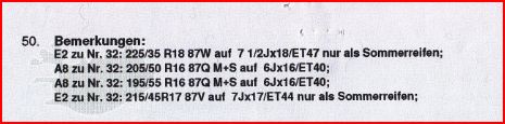 Auch hier gilt, das ich die Reifen, die nicht aus den alten Papieren mit in die neuen übertragen worden sind, nochmals beim TÜV eintragen lassen