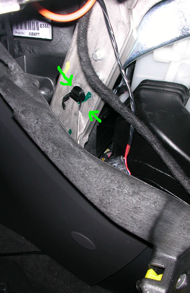 Um das Antennenkabel zu finden, muss man die Abdeckung rechts im Fussraum des Beifahrers abschrauben.